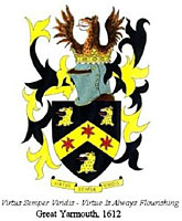 Great Yarmouth: Arms confirmed in 1612, to John Cory of London, Gent., grandson of Thomas Cory, born in Great Yarmouth but later living in London, of Bramerton line. According to Le Neve, John Cory (1538-81) was the first to bear these arms.